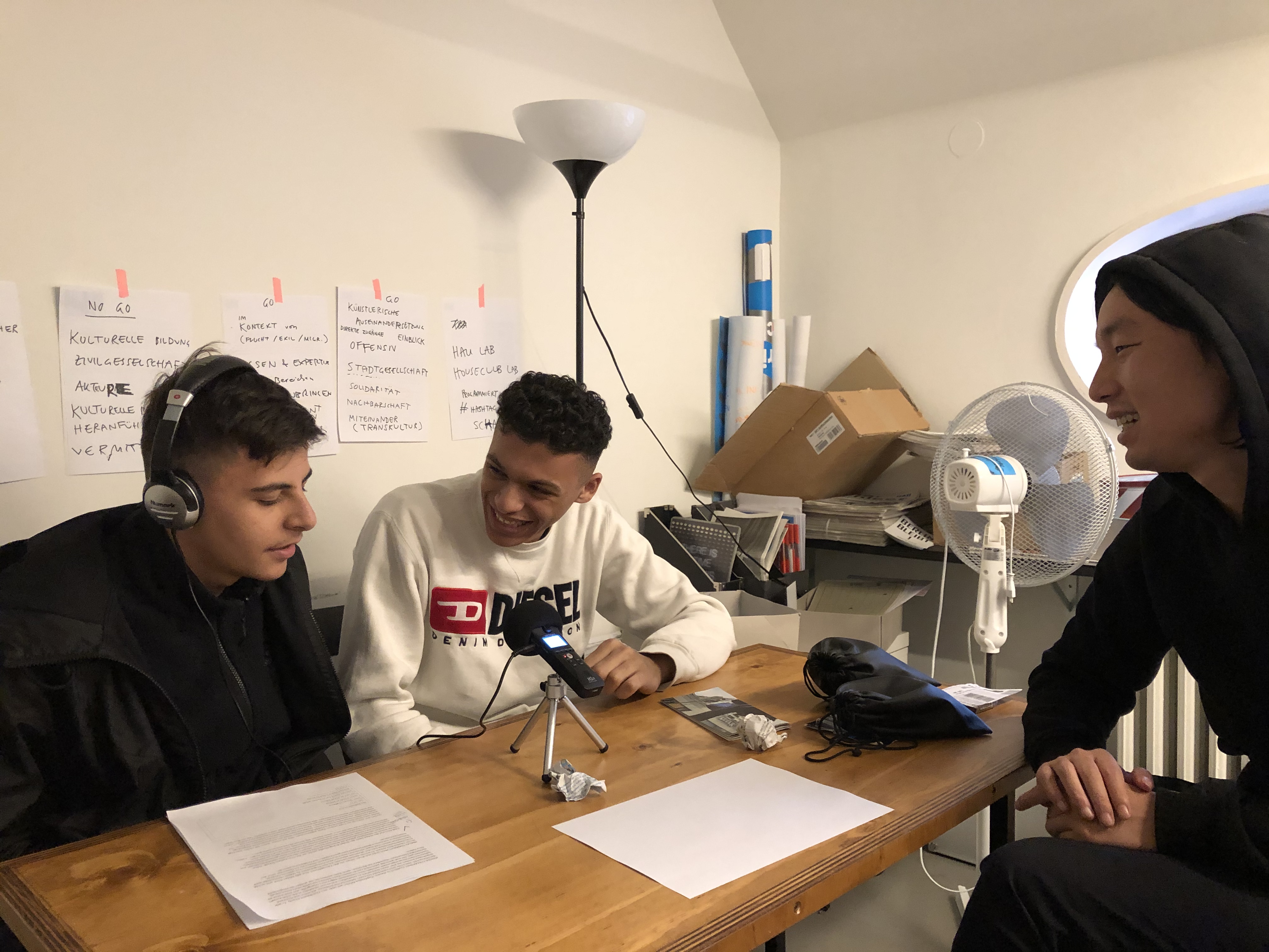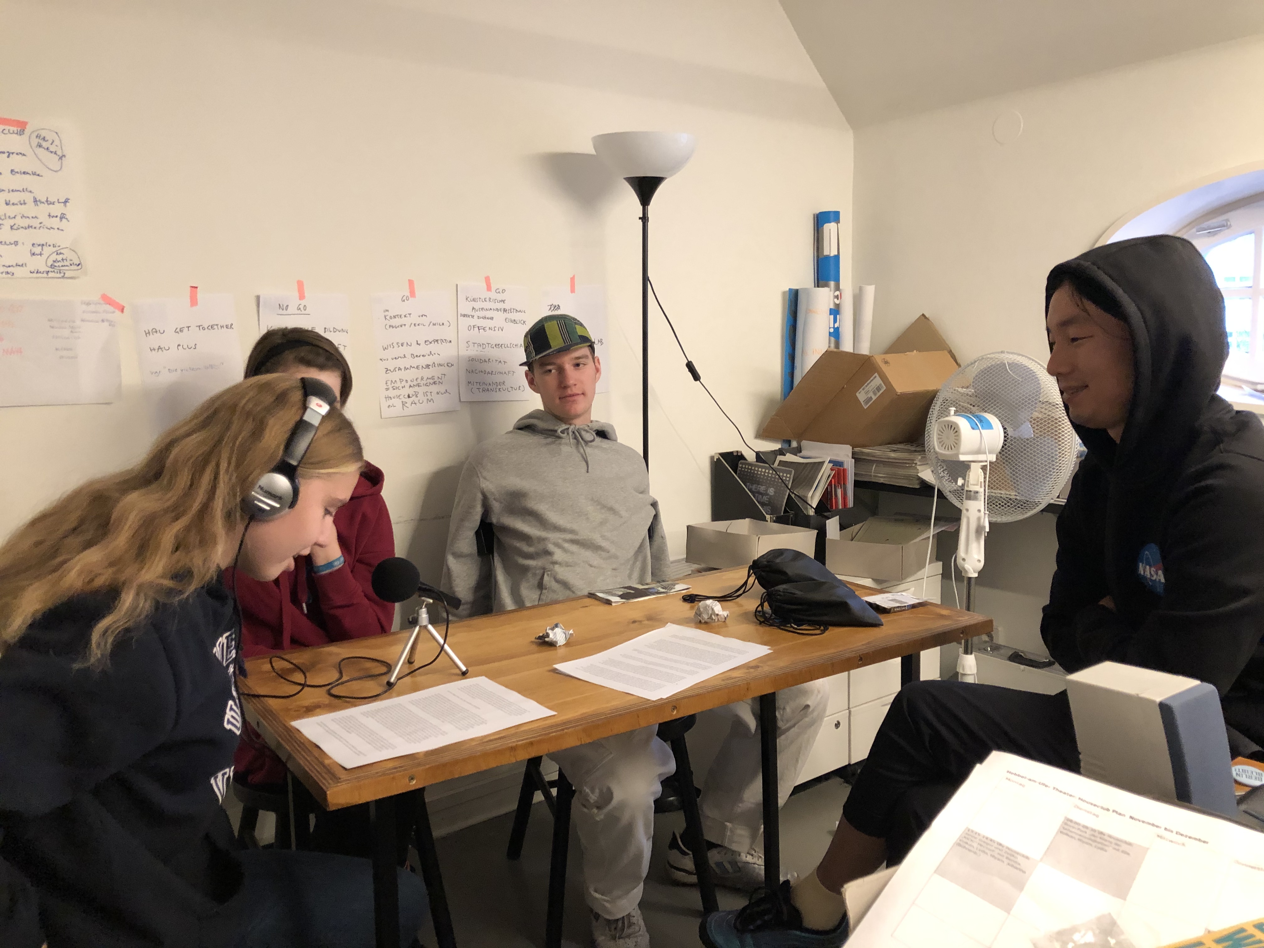 Unsere Mentor:innen: die ultranetten Vicky, Serkan und Abilaschan von erklär-mir-mal und die genialen Enya und Volkan vom HAU.